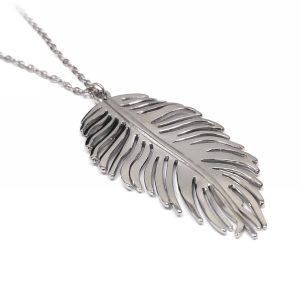 Κολιέ Ατσάλι 316L, μακριά αλυσίδα με φύλλο σε χρώμα Ασημί, Μήκος 80cm