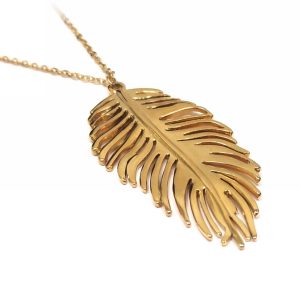 Κολιέ Ατσάλι 316L, μακριά αλυσίδα με φύλλο σε χρώμα Χρυσαφί, Μήκος 80cm