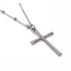 Κολιέ Ατσάλι 316L, αλυσίδα με σταυρό σε χρώμα Ασημί