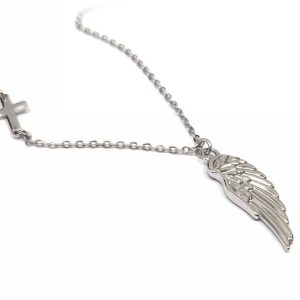 Κολιέ Ατσάλι 316L, αλυσίδα με σταυρό και φτερό σε χρώμα Ασημί