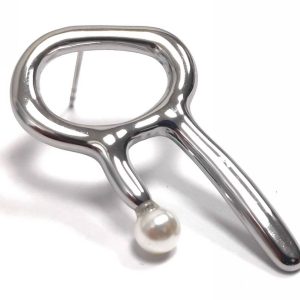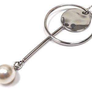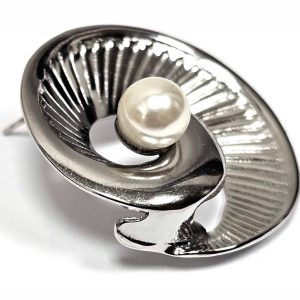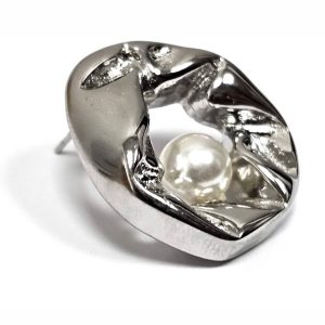 Σκουλαρίκια Ατσάλι 316L, με πέρλα και φίλντισι σε χρώμα Ασημί