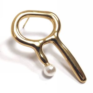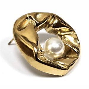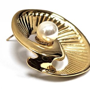 Σκουλαρίκια Ατσάλι 316L, με πέρλα και φίλντισι σε χρώμα Χρυσαφί