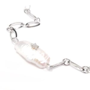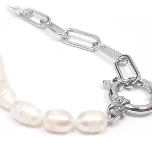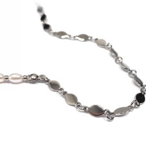 Κολιέ Ατσάλι 316L, αλυσίδα με μαργαριτάρι σε χρώμα Ασημί
