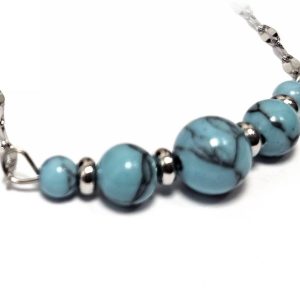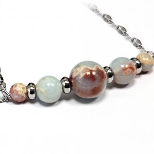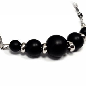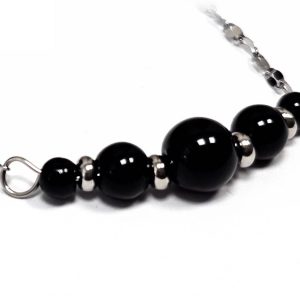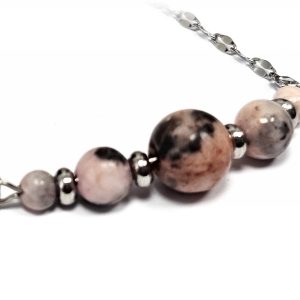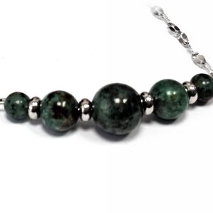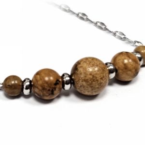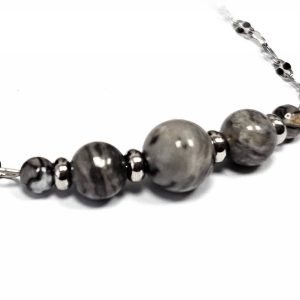 Κολιέ Πέτρα ημιπολύτιμη 4-6-8-6-4mm, ατσάλι σε χρώμα Ασημί