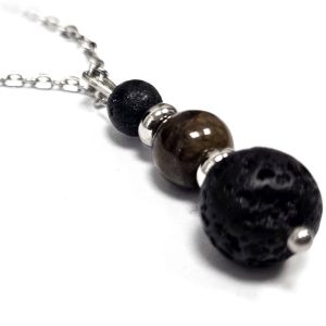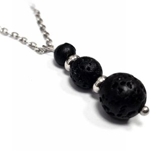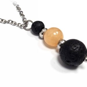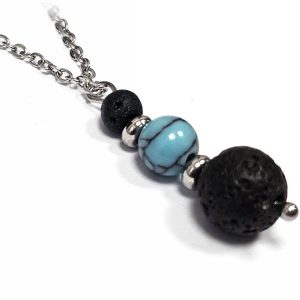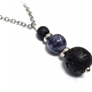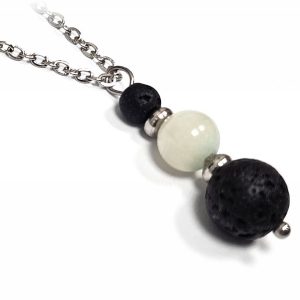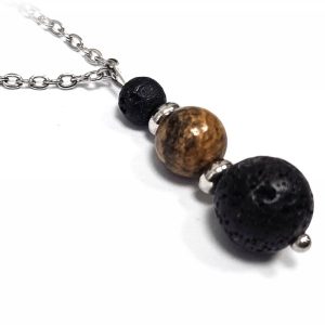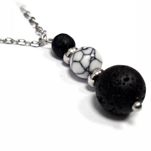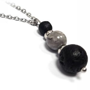 Κολιέ Πέτρα ημιπολύτιμη και λάβα, ατσάλι σε χρώμα Ασημί