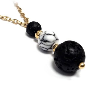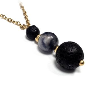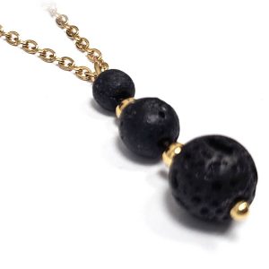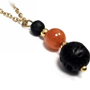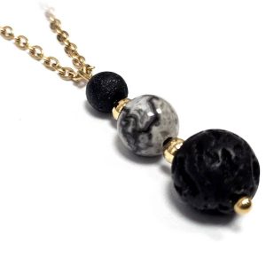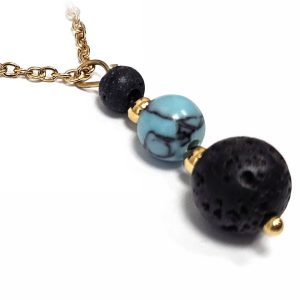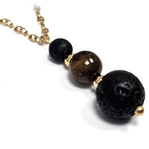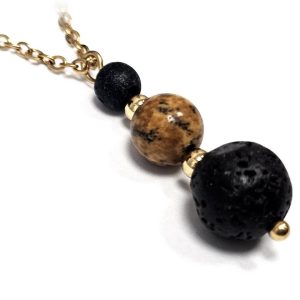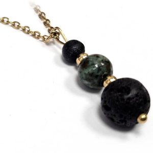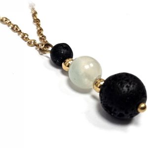 Κολιέ Πέτρα ημιπολύτιμη και λάβα, ατσάλι σε χρώμα Χρυσαφί