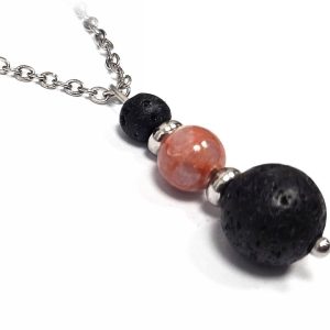 Κολιέ Πέτρα ημιπολύτιμη και λάβα, ατσάλι σε χρώμα Ασημί