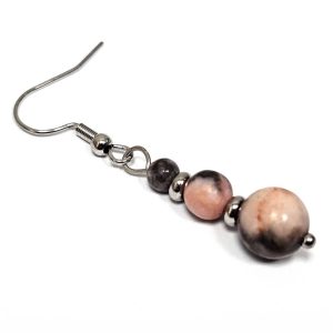 Σκουλαρίκια Πέτρα ημιπολύτιμη 4-6-8mm, ατσάλι σε χρώμα Ασημί