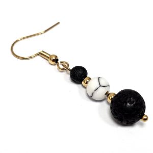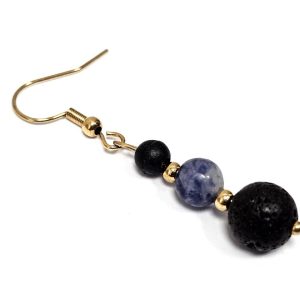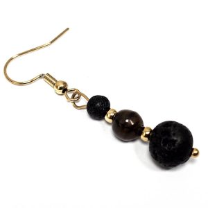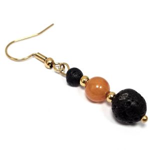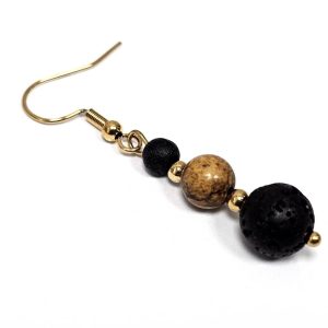 Σκουλαρίκια Πέτρα ημιπολύτιμη και λάβα, ατσάλι σε χρώμα Χρυσαφί