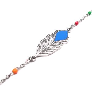 Βραχιόλι Πέτρα 316L, αλυσίδα με φτερό και πολύχρωμες πέτρες σε χρώμα Ασημί
