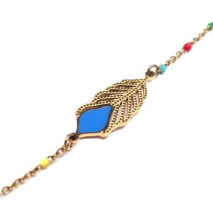 Βραχιόλι Πέτρα 316L, αλυσίδα με φτερό και πολύχρωμες πέτρες σε χρώμα Χρυσαφί