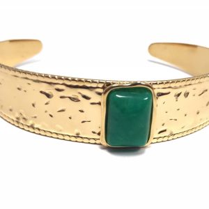 Βραχιόλι Πέτρα 316L, σταθερό με πράσινη πέτρα σε χρώμα Χρυσαφί