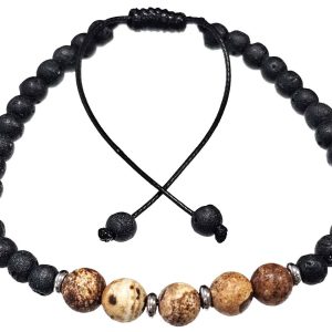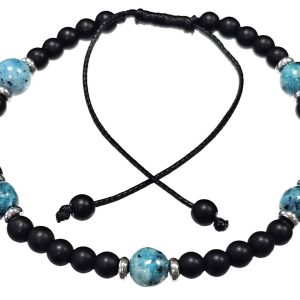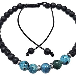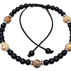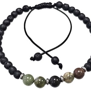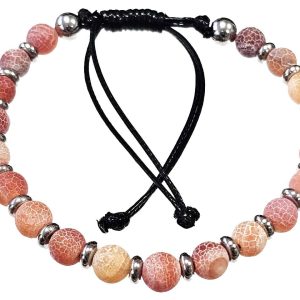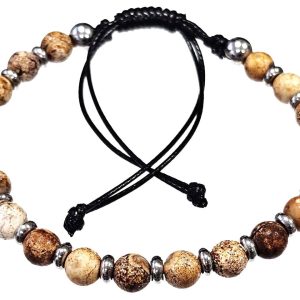 Βραχιόλι Πέτρα μακραμέ 6mm, με ημιπολύτιμες πέτρες και στοιχεία από ατσάλι