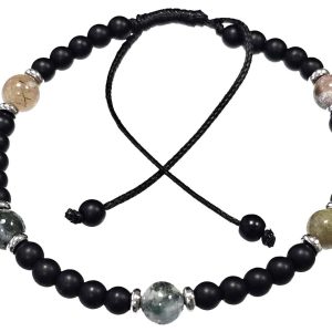 Βραχιόλι Πέτρα μακραμέ 4mm, με ημιπολύτιμες πέτρες και στοιχεία από ατσάλι και χρώμα Ασημί