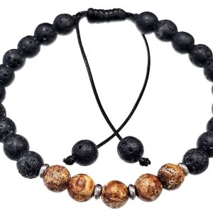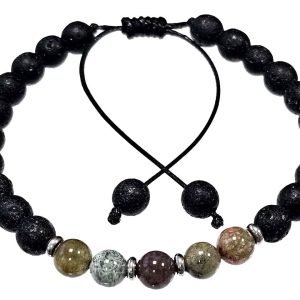 Βραχιόλι Πέτρα μακραμέ 6mm, με ημιπολύτιμες πέτρες και στοιχεία από ατσάλι