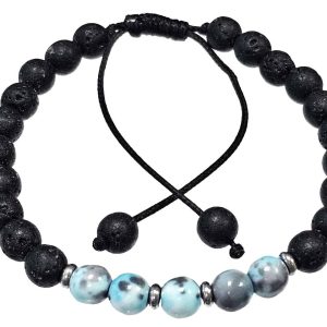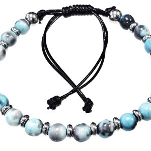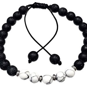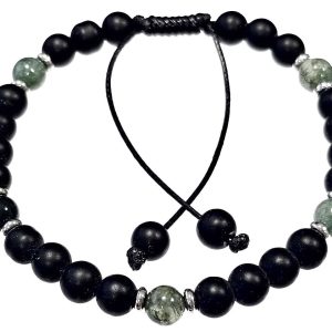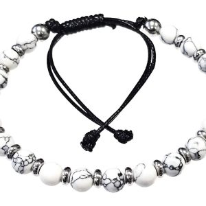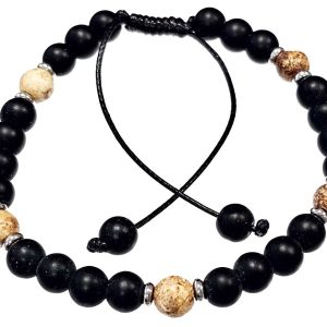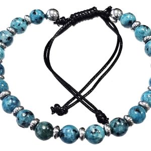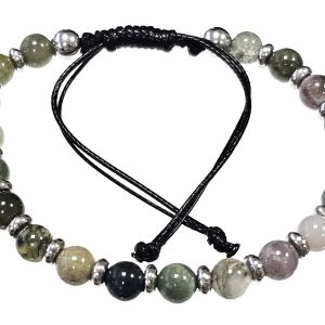 Βραχιόλι Πέτρα μακραμέ 6mm, με ημιπολύτιμες πέτρες και στοιχεία από ατσάλι και χρώμα Ασημί
