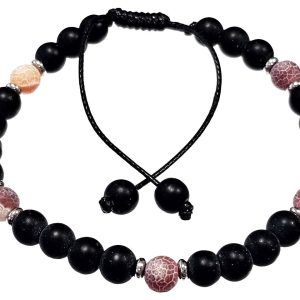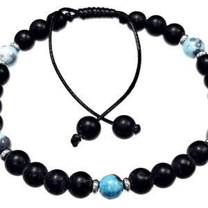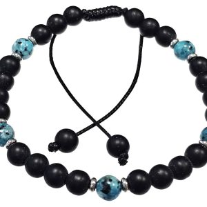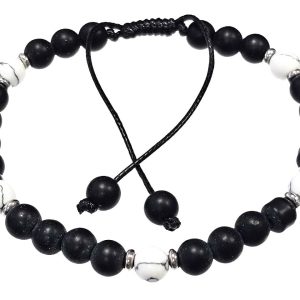 Βραχιόλι Πέτρα μακραμέ 6mm, με ημιπολύτιμες πέτρες και στοιχεία από ατσάλι και χρώμα Ασημί