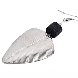 Σκουλαρίκια Πέτρα Ατσάλι 316L, με λάβα σε χρώμα Ασημί