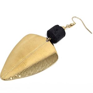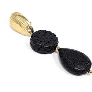 Σκουλαρίκια Πέτρα Ατσάλι 316L, με λάβα σε χρώμα Χρυσαφί