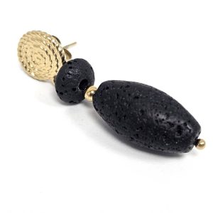 Σκουλαρίκια Πέτρα Ατσάλι 316L, σπέιρα με λάβα σε χρώμα Χρυσαφί