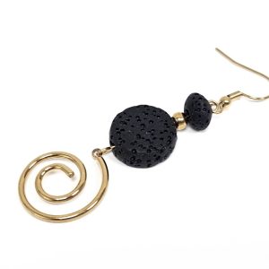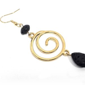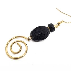 Σκουλαρίκια Πέτρα Ατσάλι 316L, σπείρα με λάβα σε χρώμα Χρυσαφί