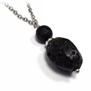 Κολιέ Πέτρα λάβα, ατσάλι σε χρώμα Ασημί