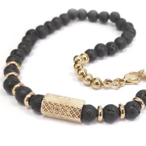 Κολιέ Πέτρα 316L, αλυσίδα με λάβα σε χρώμα Χρυσαφί, Μήκος 45cm