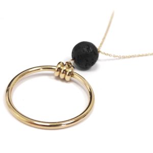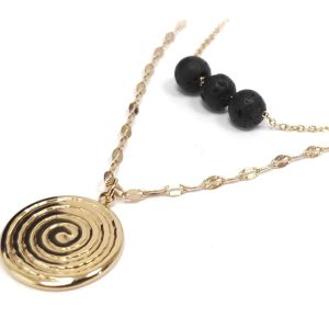 Κολιέ Πέτρα 316L, αλυσίδα με σπείρα και λάβα σε χρώμα Χρυσαφί