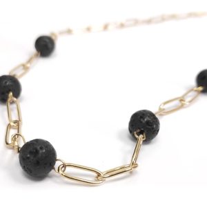 Κολιέ Πέτρα 316L, αλυσίδα με λάβα σε χρώμα Χρυσαφί, Μήκος 40cm