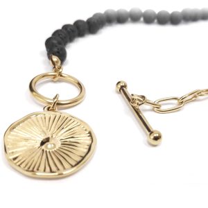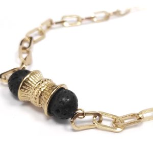 Κολιέ Πέτρα 316L, αλυσίδα με μάτι και λάβα σε χρώμα Χρυσαφί