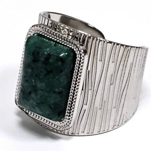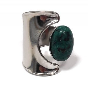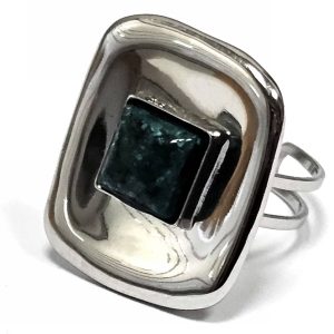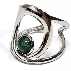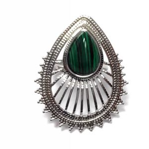 Δαχτυλίδι Πέτρα 316L, με μαλαχίτη σε χρώμα Ασημί
