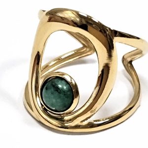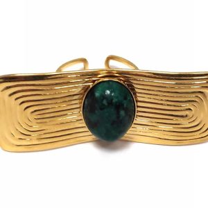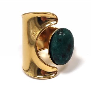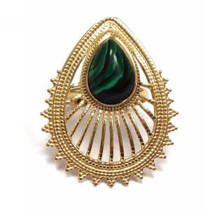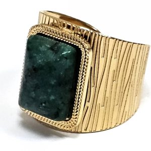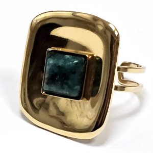 Δαχτυλίδι Πέτρα 316L, με μαλαχίτη σε χρώμα Χρυσαφί