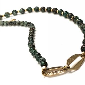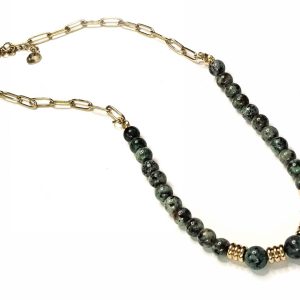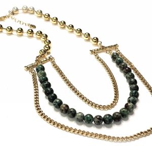 Κολιέ Πέτρα ατσάλι 316L, αλυσίδα με μαλαχίτη σε χρώμα Χρυσαφί
