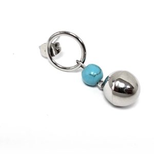 Σκουλαρίκια Πέτρα 316L, σπείρα με τυρκουάζ σε χρώμα Ασημί