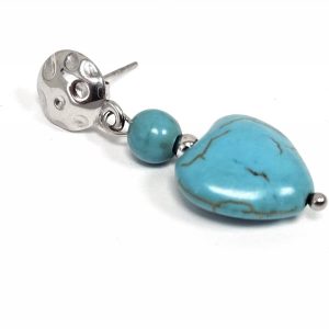 Σκουλαρίκια Πέτρα Ατσάλι 316L, καρδιά με τυρκουάζ σε χρώμα Ασημί