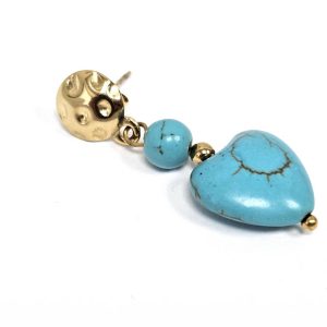Σκουλαρίκια Πέτρα Ατσάλι 316L, καρδιά με τυρκουάζ σε χρώμα Χρυσαφί