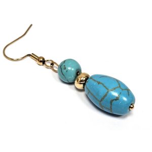 Σκουλαρίκια Πέτρα τυρκουάζ, ατσάλι σε χρώμα Χρυσαφί