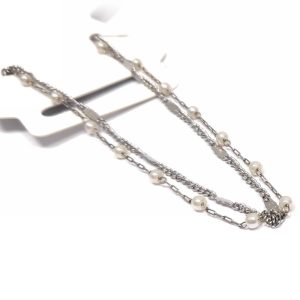 Βραχιόλι Ποδιού Ατσάλι 316L, διπλη αλυσίδα με μαργαριτάρια σε χρώμα Ασημί