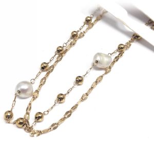 Βραχιόλι Ποδιού Ατσάλι 316L, διπλη αλυσίδα με μαργαριτάρια σε χρώμα Χρυσαφί