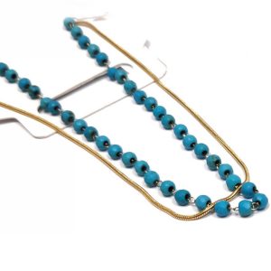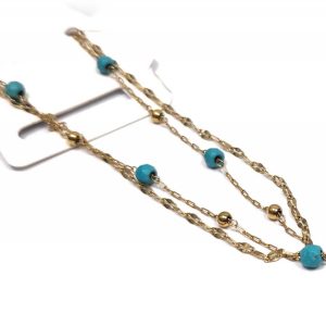 Βραχιόλι Ποδιού Ατσάλι 316L, διπλη αλυσίδα με τυρκουάζ σε χρώμα Χρυσαφί