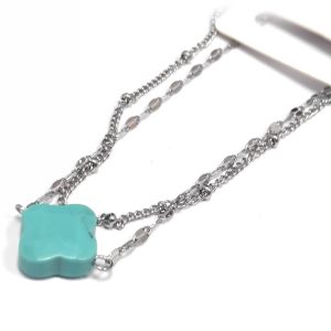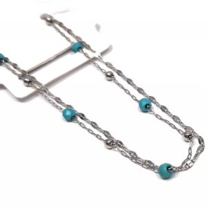 Βραχιόλι Ποδιού Ατσάλι 316L, διπλη αλυσίδα με τυρκουάζ σε χρώμα Ασημί
