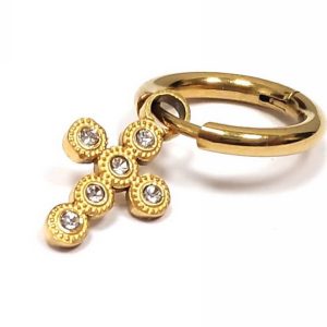 Σκουλαρίκια Ατσάλι 316L, κρικάκι με σταυρό σε χρώμα Χρυσαφί