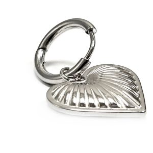 Σκουλαρίκια Ατσάλι 316L, κρίκος με καρδιά σε χρώμα Ασημί