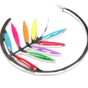 Σκουλαρίκια Ατσάλι 316L, κρίκος με πολύχρωμες πέτρες με σμάλτο σε χρώμα Ασημί, Διάμετρος 2cm