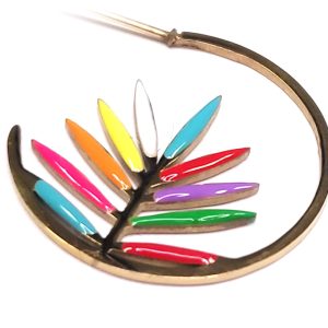 Σκουλαρίκια Ατσάλι 316L, κρίκος με πολύχρωμες πέτρες με σμάλτο σε χρώμα Χρυσαφί, Διάμετρος 2cm