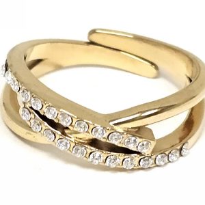 Δαχτυλίδι Ατσάλι 316L, με στρας σε χρώμα Χρυσαφί