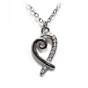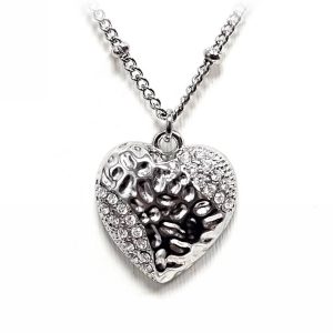 Κολιέ Ατσάλι 316L, αλυδίδα καρδιά με στρας σε χρώμα Ασημί