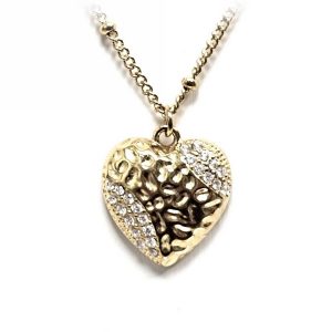 Κολιέ Ατσάλι 316L, αλυδίδα καρδιά με στρας σε χρώμα Χρυσαφί