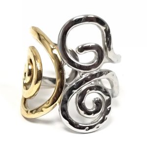 Δαχτυλίδι Ατσάλι 316L, με σπείρα σε χρώμα Χρυσαφί και χρώμα Ασημί