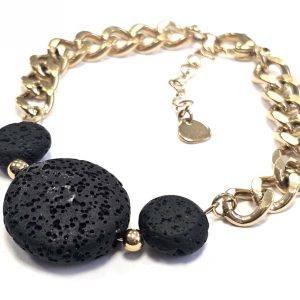 Βραχιόλι Πέτρα ατσάλι 316L, αλυσίδα με λάβα σε χρώμα Χρυσαφί